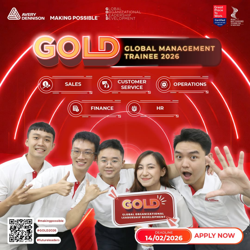 Chương trình Phát triển Lãnh đạo Toàn cầu (Global Organizational Leadership Development – GOLD) được thiết kế nhằm hiện thực hóa cơ hội phát triển lãnh đạo, trang bị cho các tài năng trẻ nền tảng đào tạo bài bản, trải nghiệm thực tiễn trong môi trường doanh nghiệp và lộ trình phát triển liên tục. Tại Avery Dennison, GOLD là một trong những chiến lược trọng tâm để phát triển nguồn nhân lực và xây dựng đội ngũ lãnh đạo tương lai.