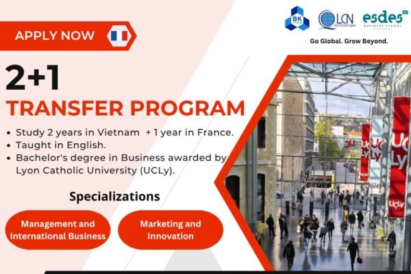 Lộ trình đào tạo: 2 năm đầu học tại Khoa Quản lý Công Nghiệp, trường ĐH Bách Khoa TP.HCM (~120 ECTS) + 1 năm cuối (8 tháng) học tại ESDES Business School, Pháp.