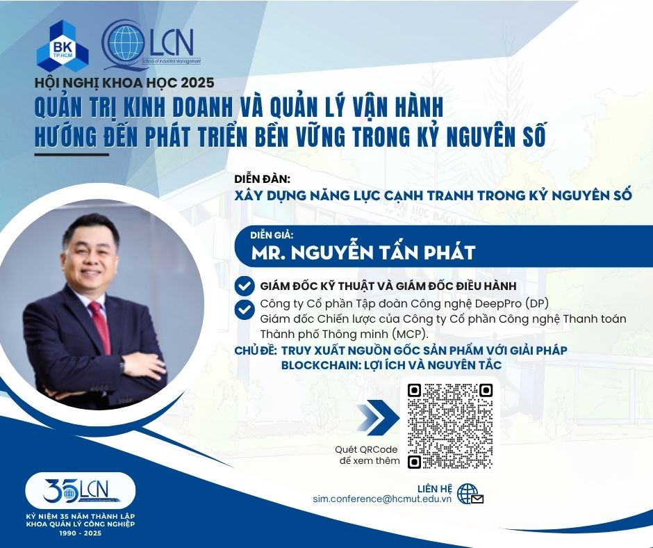 Tại hội nghị, ông Nguyễn Tấn Phát sẽ trình bày chủ đề “Truy xuất nguồn gốc sản phẩm với giải pháp blockchain: Lợi ích và nguyên tắc”. Phần trình bày hứa hẹn sẽ mang đến những chia sẻ thực tiễn về ứng dụng blockchain trong quản lý chuỗi cung ứng, hướng tới sự minh bạch và phát triển bền vững.