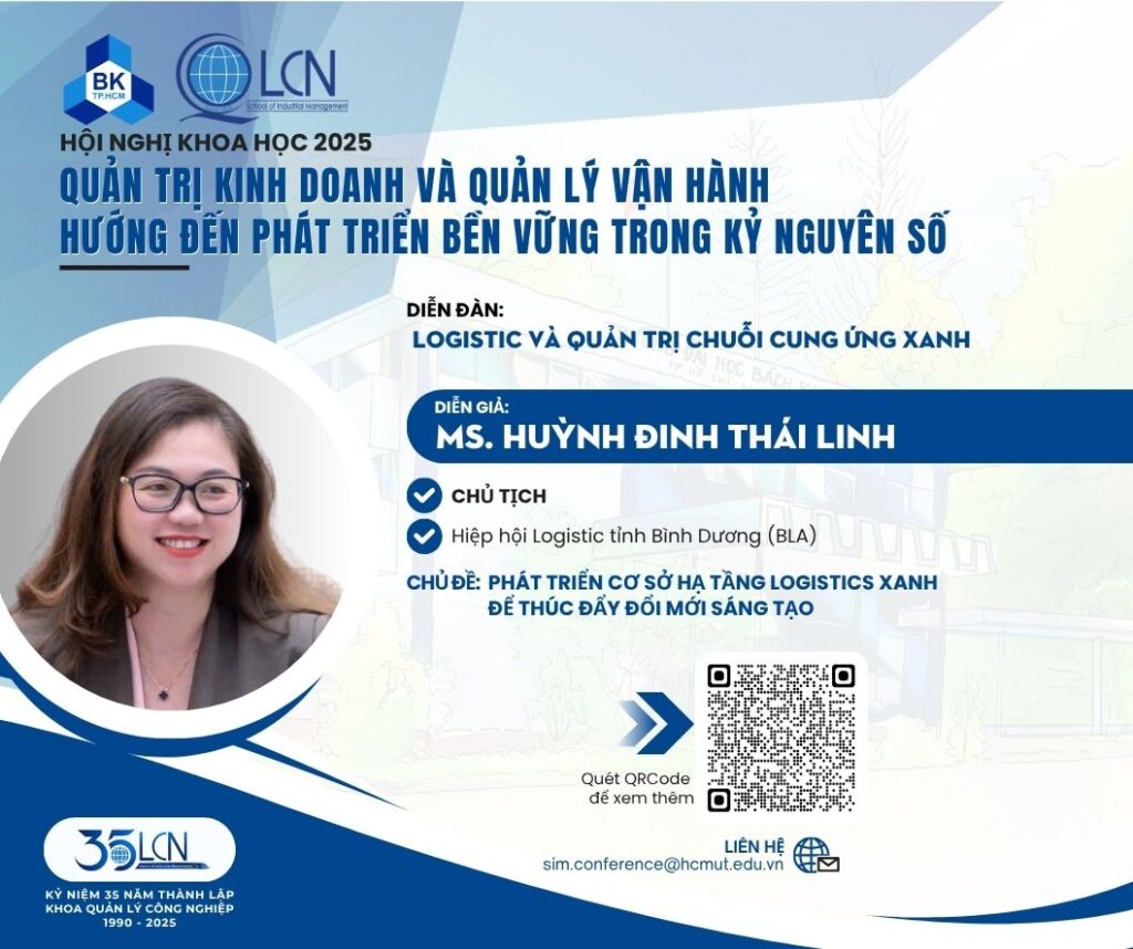 Trong phần trình bày với chủ đề “Phát triển cơ sở hạ tầng logistics xanh để thúc đẩy đổi mới sáng tạo” , diễn giả Huỳnh Đinh Thái Linh sẽ chia sẻ những góc nhìn chiến lược và cách các công ty có thể phát triển trong môi trường kinh doanh đầy cạnh tranh ngày nay.