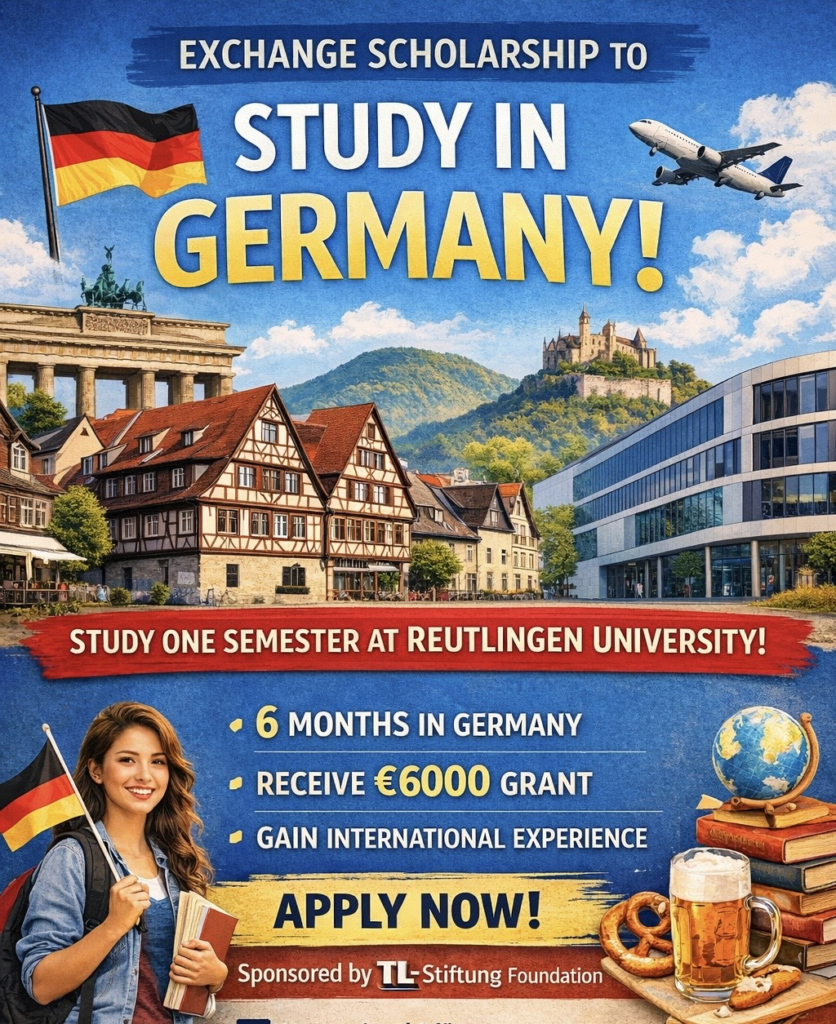 Trường ESB, ĐH Reutlingen (Đức) sẽ cấp một số suất học bổng trao đổi sinh viên cho SV khoa QLCN học tập 1 học kỳ tại Đức trong học kỳ mùa Đông 2026 (Tháng 9/2026 đến tháng 2/2027). Học bổng này được tài trợ bởi quỹ học bổng TL-Stiftung, dành cho các sinh viên được đề cử bởi khoa QLCN, được chấp thuận bởi trường ESB, và vượt qua vòng phỏng vấn của quỹ TL-Stiftung.