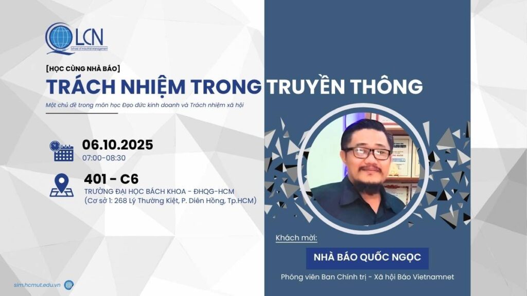 Một chủ đề trong môn học Đạo đức kinh doanh và Trách nhiệm xã hội “Trách nhiệm trong truyền thông” sẽ được khách mời trao đổi với các bạn sinh viên của môn học, theo thông tin như sau: