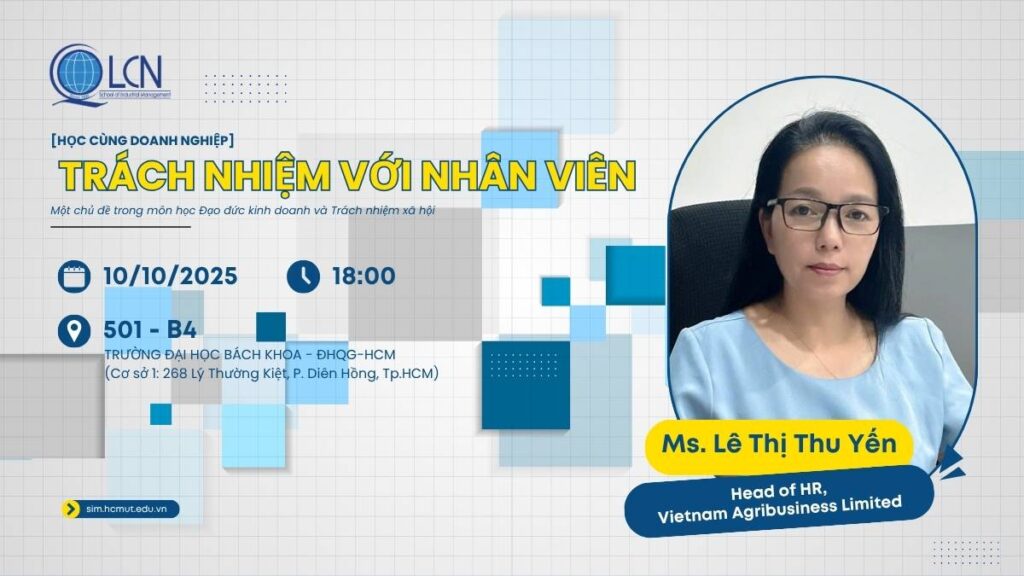 Doanh nghiệp có những trách nhiệm gì với nhân viên của mình? Đây là nội dung chính của buổi HỌC CÙNG DOANH NGHIỆP dành cho các bạn học viên Cao học trong môn học “Đạo đức kinh doanh và Trách nhiệm xã hội”. Khách mời sẽ chia sẻ trong buổi trao đổi với chủ đề “Trách nhiệm với nhân viên” với những khía cạnh cốt lõi trong mối quan hệ giữa doanh nghiệp và người lao động — từ đạo đức kinh doanh, chính sách nhân sự đến vai trò của lãnh đạo trong việc kiến tạo một môi trường làm việc bền vững và nhân văn.